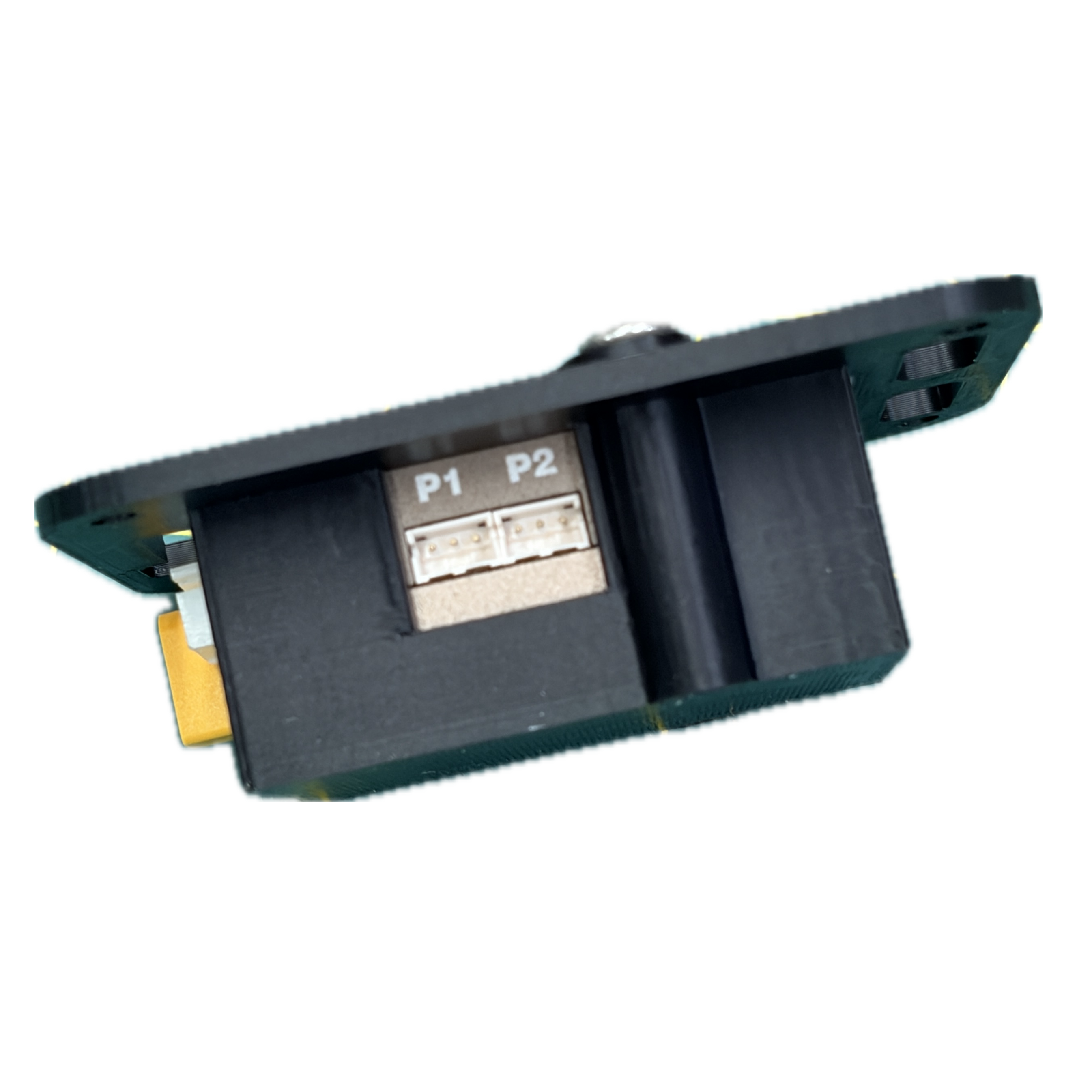 The SF10 is secured by a clamp on top of the mount. The clamps are attached with 3mm flat head screws (provided). Mount may be held into the airframe with screws (not provided) or adhesive.